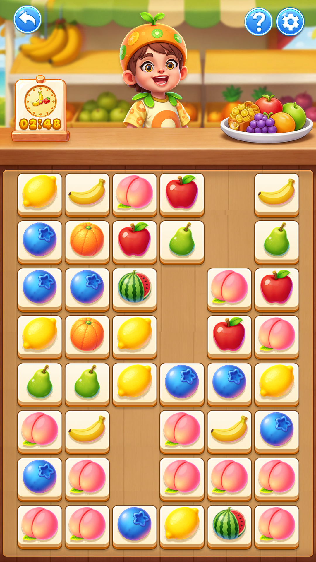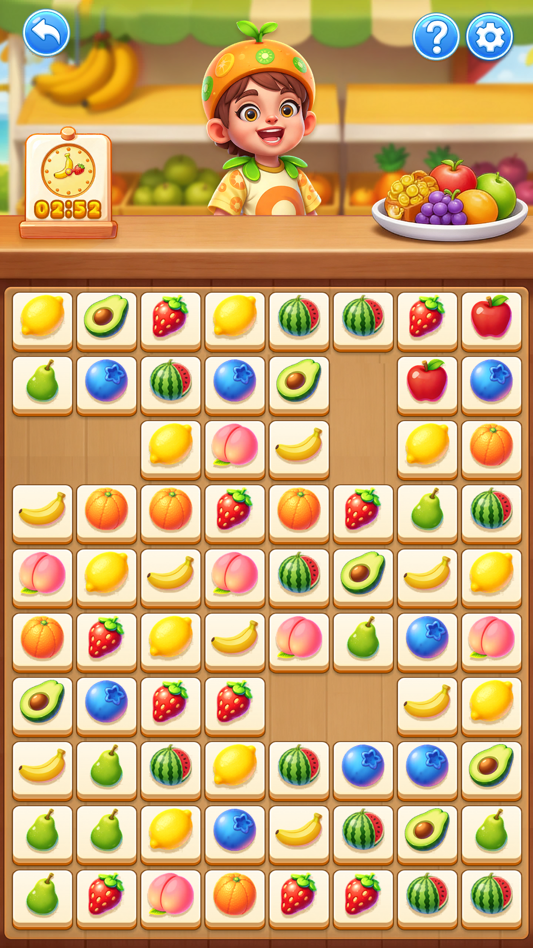 players connect matching fruits and clear the board within a limited time.